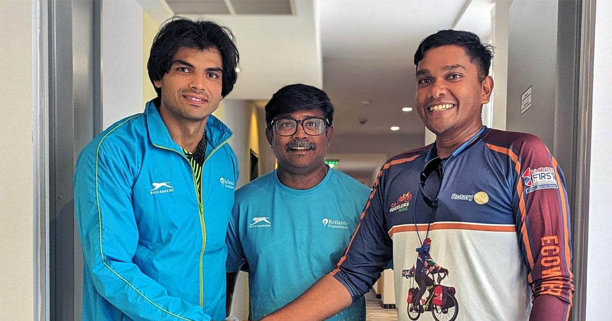 India's star athlete Neeraj Chopra will have a special supporter at the Paris Olympics: a Kerala cyclist who has travelled all the way from Calicut, riding more than 22000 kilometers over two years.