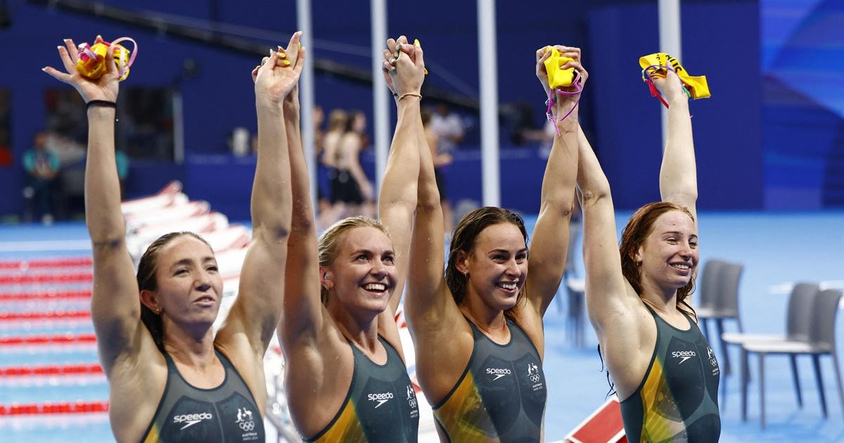 The Australian team of Mollie O'Callaghan, Lani Pallister, Brianna Throssell and Ariarne Titmus finished in an Olympic record time of seven minutes 38.08 seconds at the La Defense Arena.