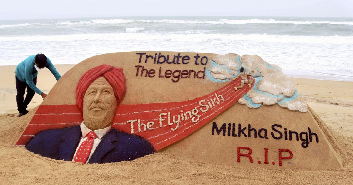 'Tribute to the legend, The #FlyingSikh’ #MilkhaSinghji. My SandArt at Puri beach in Odisha. #RIP', Pattnaik tweeted.
