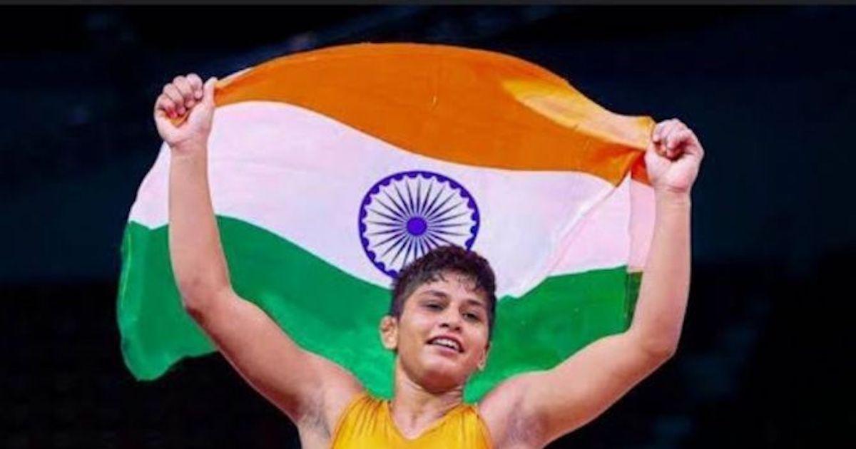 All Indian athletes are competing under the UWW flag because the wrestling federation is suspended.