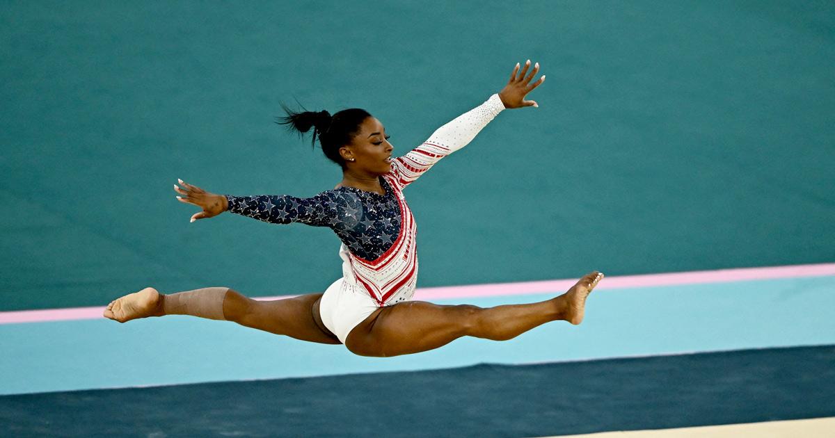 Biles, who was competing with her left calf taped after suffering a muscle strain during Sunday's qualifying competition, started her bid for the first of a possible five gold medals in Paris on the vault.