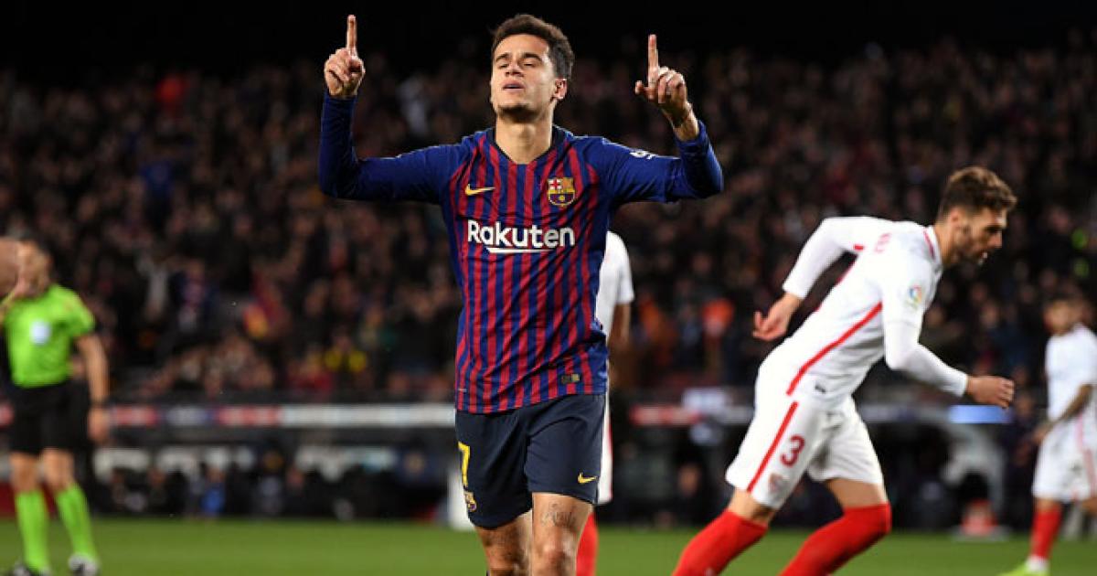 Philippe Coutinho struck twice as Barcelona mounted a comeback to thrash Sevilla 6-1 and sweep into the Copa del Rey semi-finals 6-3 on aggregate on Wednesday.