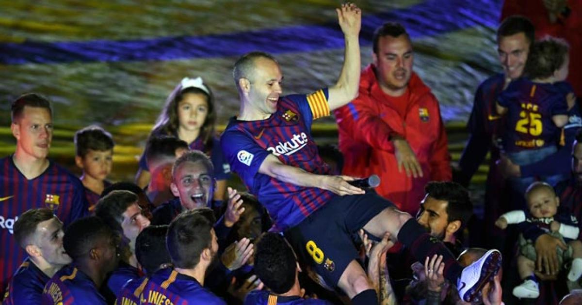 Barcelona captain Andres Iniesta lifted a ninth Liga title after his side beat Real Sociedad 1-0 on Sunday in an emotional final game for the midfielder at the Nou Camp while Fernando Torres scored twice in his final game for Atletico Madrid.
