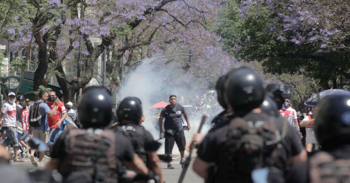 IMAGE: Riot police officers clash with fans of Diego Maradona. Photograph: Ricardo Ceppi/Getty Images