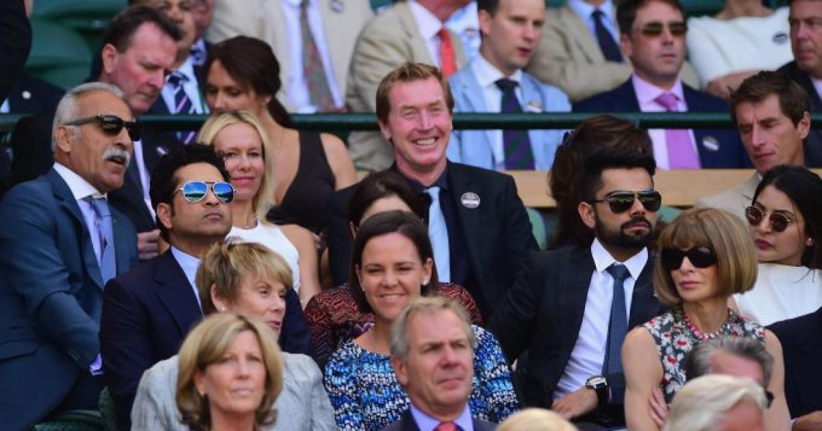 Tendulkar, a Roger Federer fan, was seated next to his wife, Anjali, followed by Kohli and his actress girlfriend Anushka Sharma.
