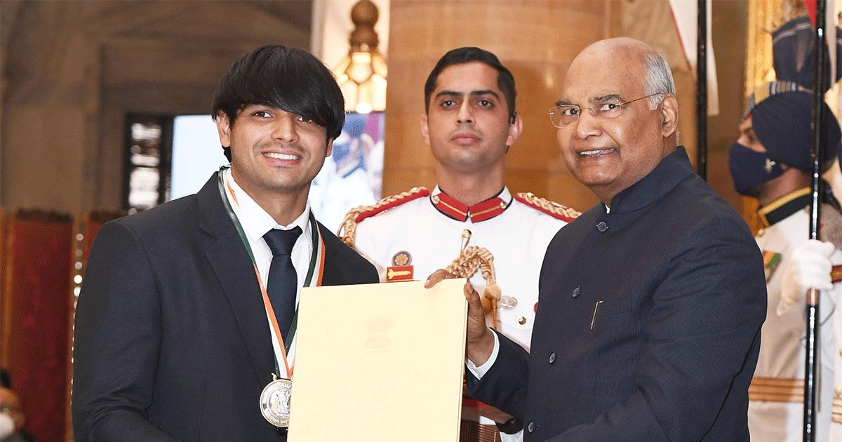 Chopra, who became India's first Olympic medallist in athletics and the first gold-medallist in 13 years, was the first among the Khel Ratna awardees to receive the honour.