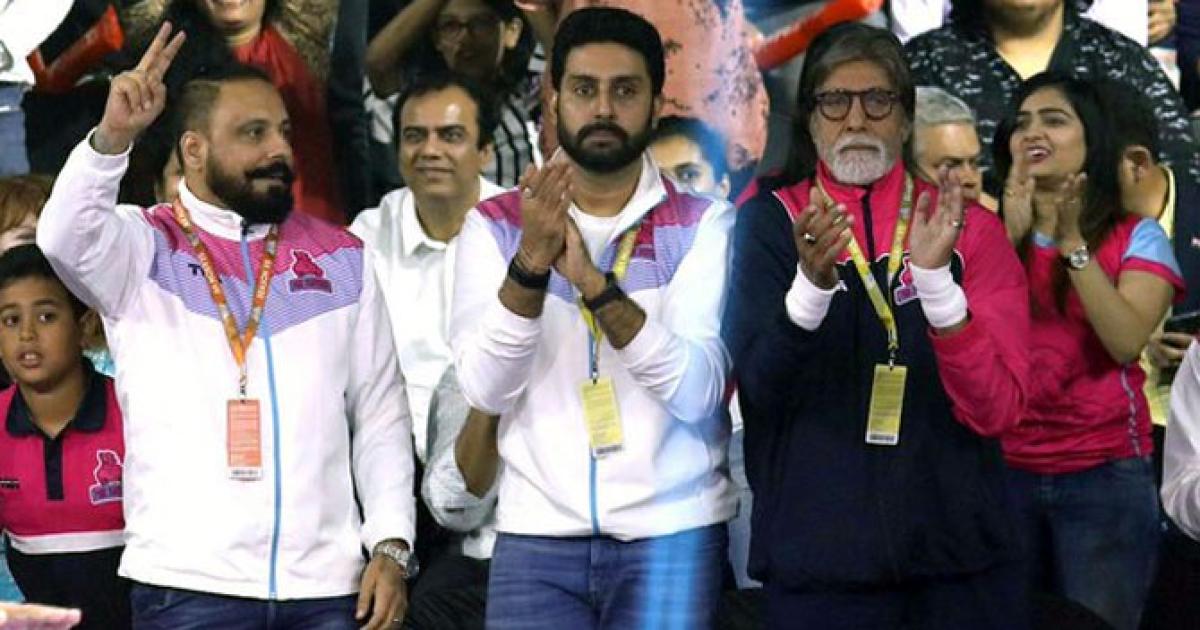The veteran actor was rooting for Abhishek's kabaddi team Jaipur Pink Panthers, who registered a 37-21 victory against Haryana Steelers.