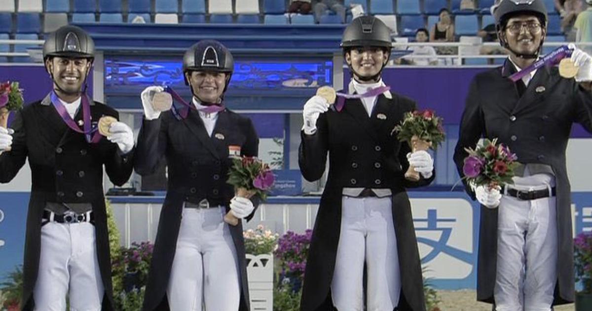 The young quartet of Sudipti Hajela, Divyakriti Singh, Anush Agarwalla and Vipul Hriday won India's first ever dressage team gold and only the second medal in the discipline. It was also India's first equestrian gold in 41 years, after the 1982 Asian Games in New Delhi.