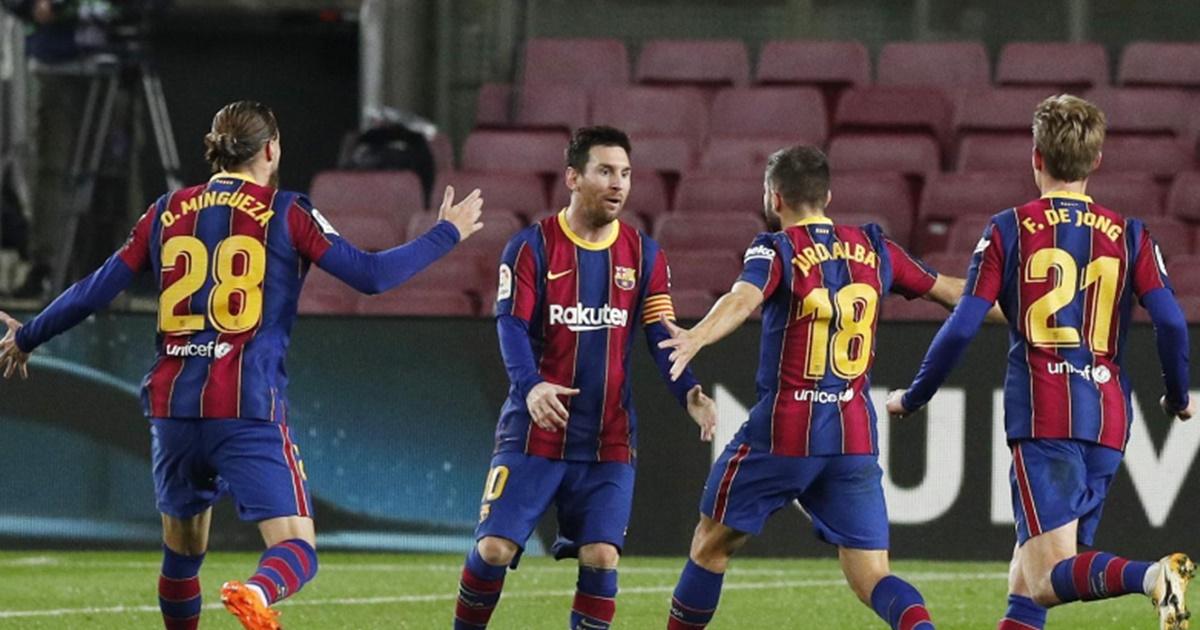 The Catalans took the lead shortly before halftime when Frenkie de Jong arrived into the box and poked home a cross from Alba, initially seeing the goal ruled out for offside but then celebrating when it was awarded after a VAR review.