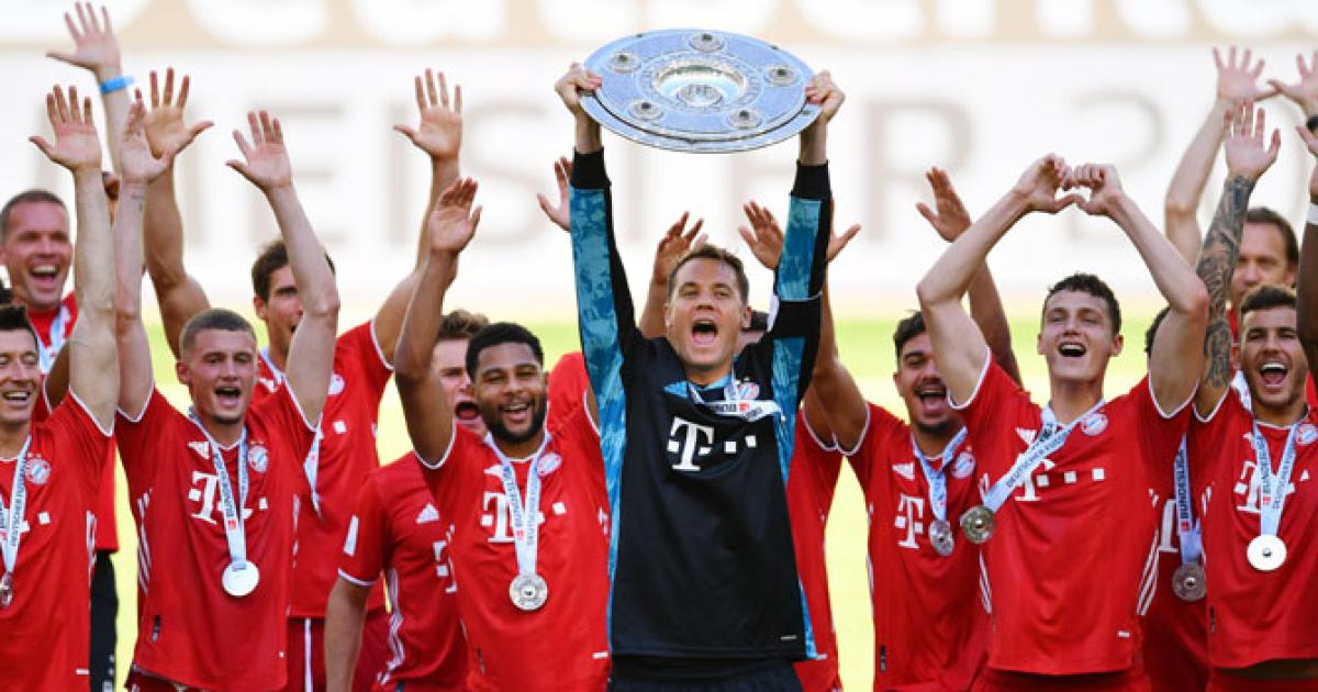 Bayern Munich, already crowned Bundesliga champions last week, lifted the league trophy in an empty stadium on Saturday after crushing hosts VfL Wolfsburg 4-0 on the final matchday.