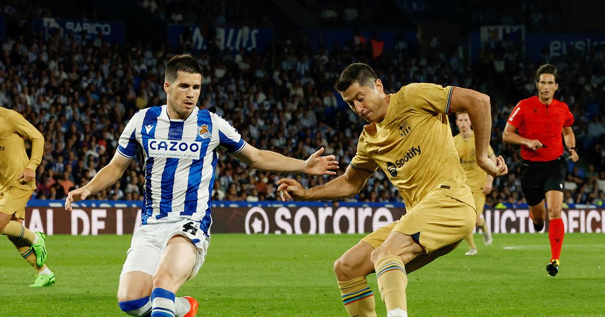 Robert Lewandowski scored a brace as Barcelona cruised to a 4-1 victory at Real Sociedad on Sunday, their first win of the new LaLiga season.