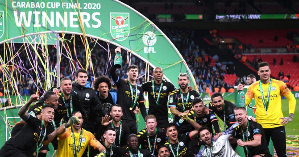 Manchester City continued their imperious stranglehold over the League Cup with a 2-1 victory over Aston Villa with goals from Sergio Aguero and Rodri in the final at Wembley on Sunday to win the trophy for a third straight season.