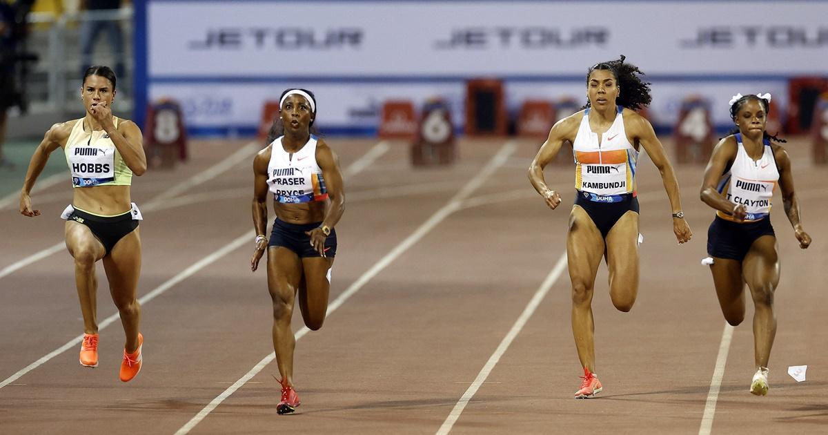 Jamaica's Tia Clayton edged her twin sister Tina Clayton in the women's 100 metres at the Doha Diamond League meet on Friday while Olympic champion Letsile Tebogo nearly threw away victory near the finish line in the men's 200 metres.