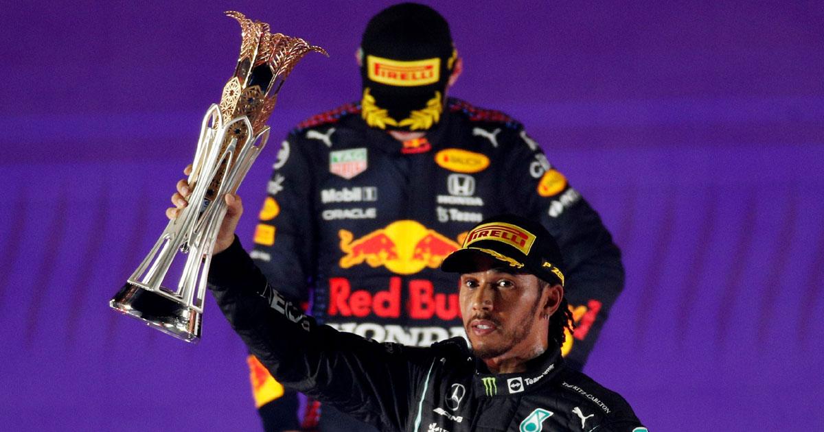 Lewis Hamilton won a crazy, twice-halted Saudi Arabian Grand Prix for Mercedes on Sunday to go level on points with Red Bull rival Max Verstappen and set up a winner-takes-all title showdown.