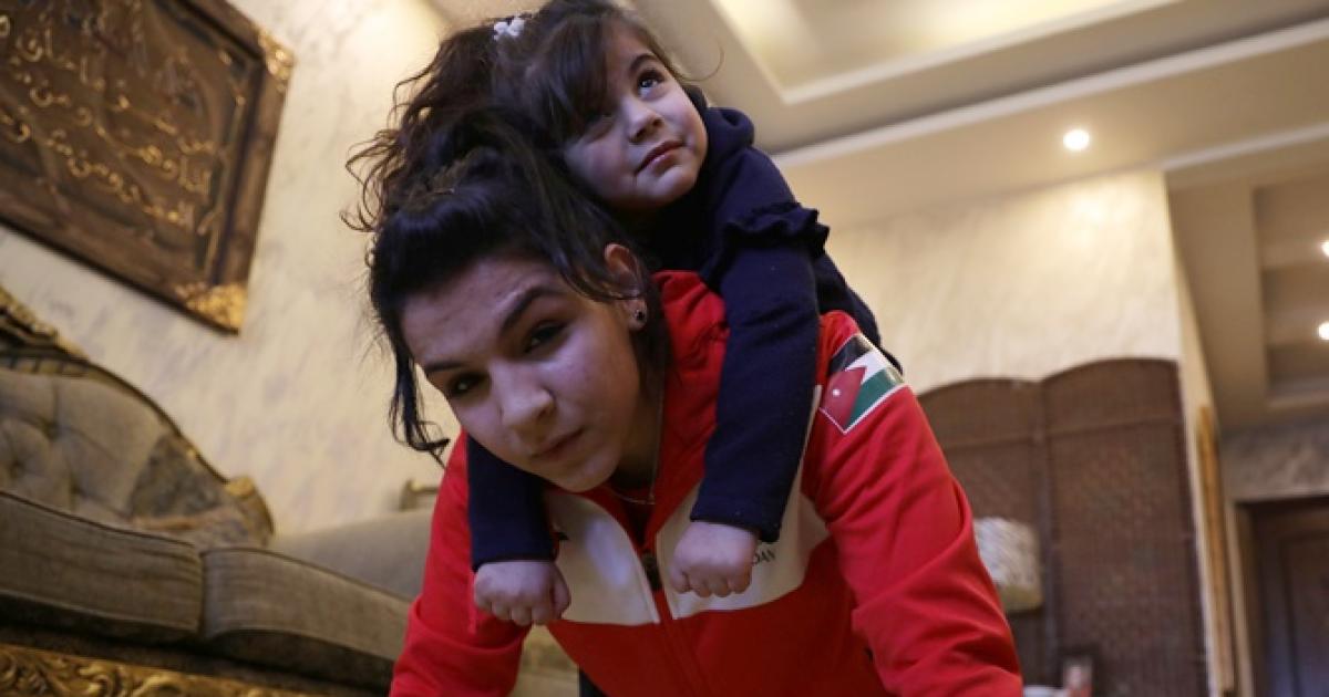 With no access to gym equipment during the lockdown in Jordan, Olympic hopeful judoka Hadeel Alami has hit upon an unorthodox way to stay in peak condition - using her little sister as a weight during her training routine.