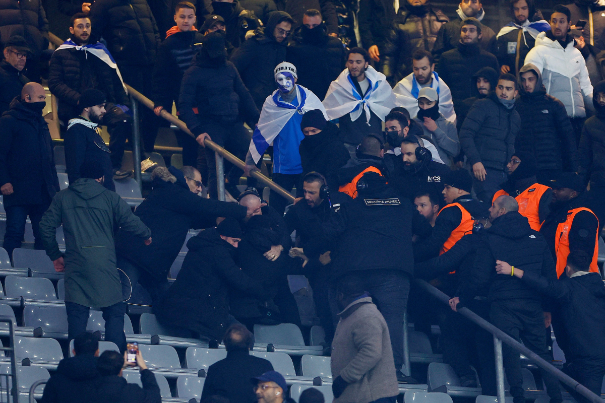 As the match got underway, there was a melee near the Israel fans' section for several minutes, with people seen running and punches thrown. Stewards quickly formed a barrier.
