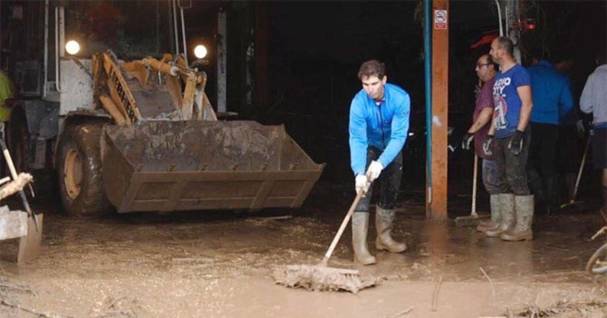 Nadal pitched in to help flood victims in the nearby Majorcan town of Sant Llorenç des Cardassar that was battered by flash floods due to heavy rains on Monday.