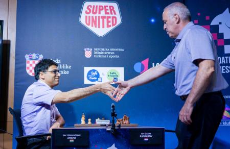 Blitz (Fourth round): Viswanathan Anand beat Garry Kasparov; Anton Korobov lost to Jan-Kryzstof Duda; Shakriyar Mamedyarov lost to Alexander Grischuk; Anish Giri drew Peter Van Foreest; Ian Nepomniachtchi drew with Maxime Vachier-Lagrave.