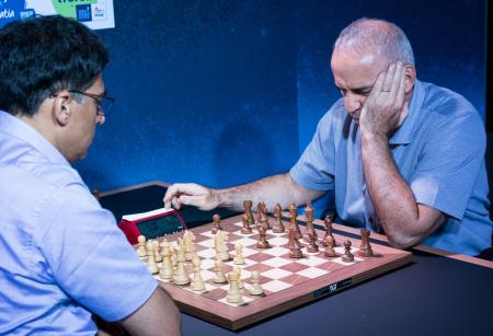 Anand is returning to over-the-board action after March 2020 and resumed his rivalry with Kasparov who is playing the Blitz event alone.