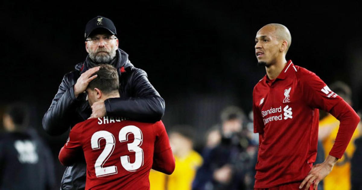 Xherdan Shaqiri went close to an equaliser for Liverpool in the 69th minute but his curling free-kick was pushed on to the post superbly by Wolves keeper John Ruddy.