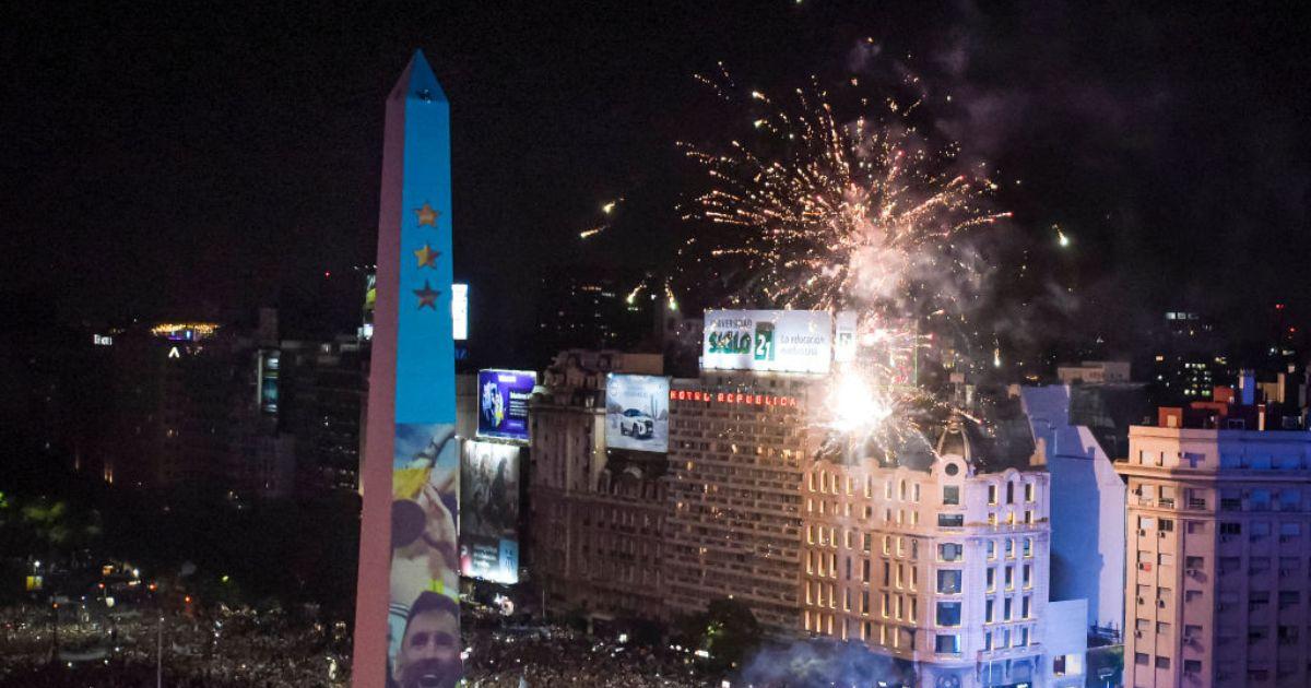 In the streets of the capital, revellers partied early into the hours of Monday. Fans climbed onto bus stops and lamp-posts, blared horns, banged drums and set off fireworks into the night sky. Some even climbed the tall Obelisco monument.