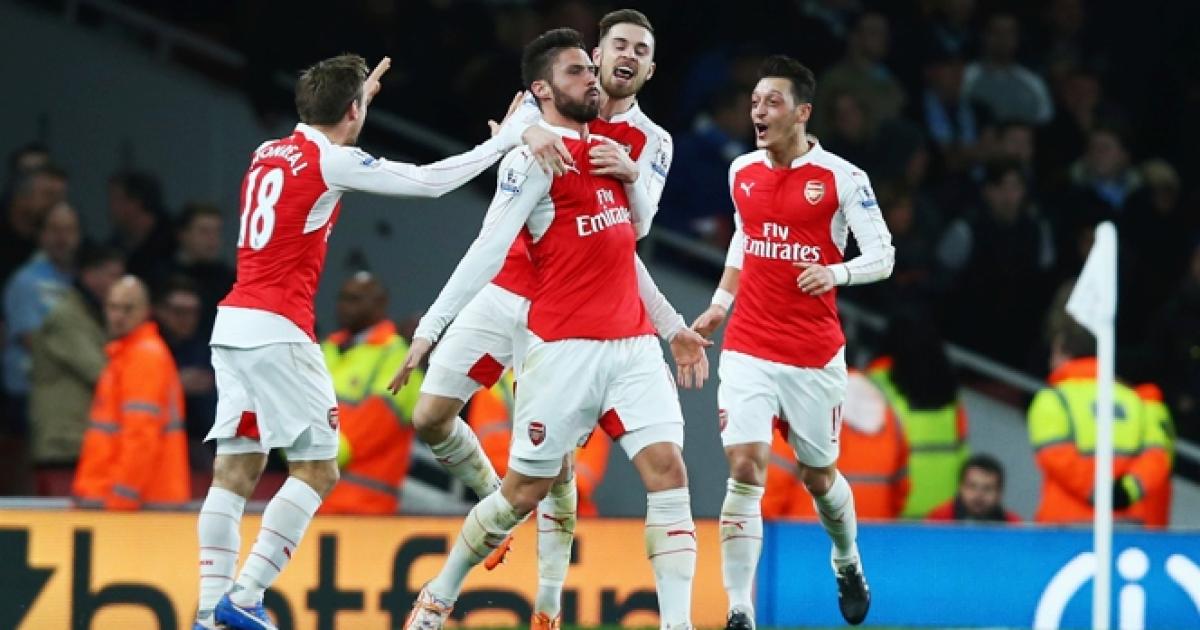 Arsenal's second arrived in first-half stoppage time as a defensive error from Eliaquim Mangala gifted possession to the hosts who, via Ozil again, worked the ball to Giroud.