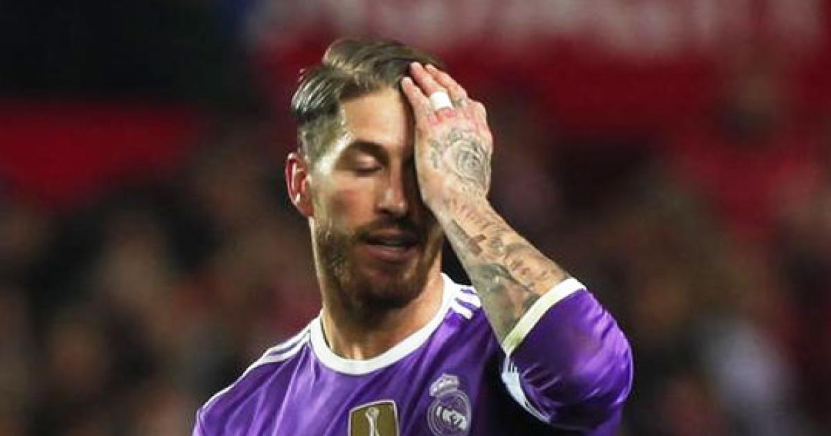 Image: Real Madrid's Sergio Ramos reacts during the La Liga match against Sevilla at the Ramon Sanchez Pizjuan stadium in Seville, Spain, on Sunday