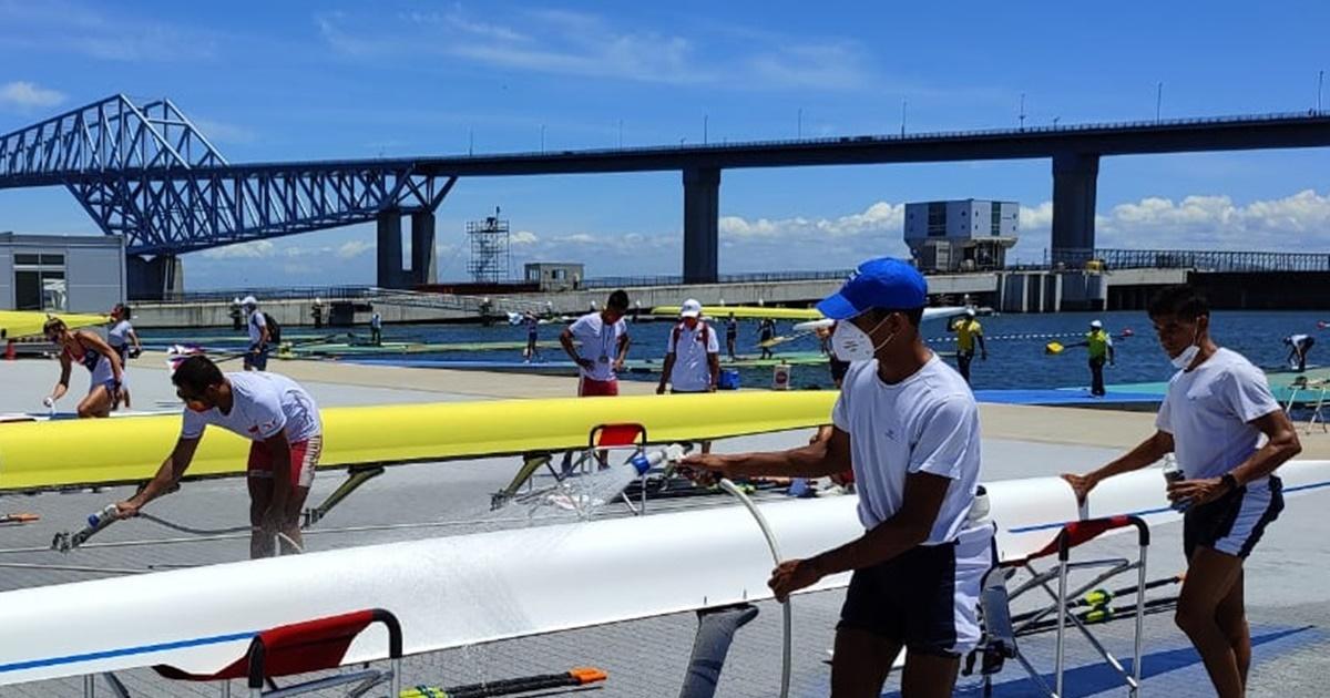 IMAGE: Indian rowers Arjun Lal Jat and Arvind Singh placed third in the men's lightweight double sculls repechage at the Tokyo Olympics on Sunday. Photograph: Kind courtesy SAI Media/Twitter