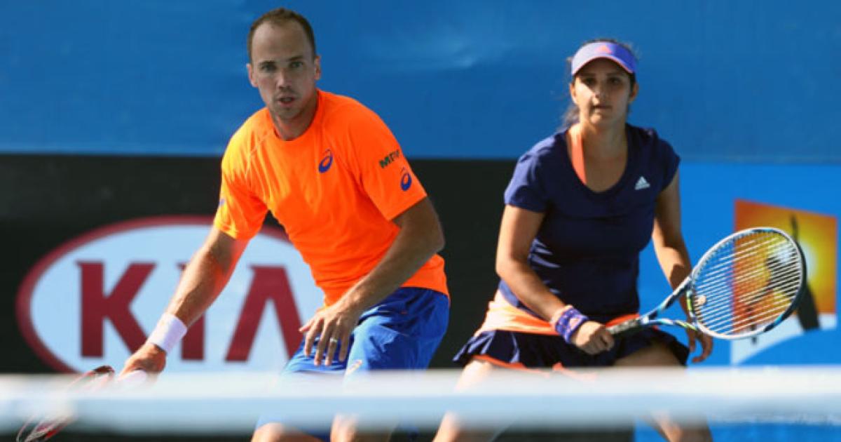 Top seeds Sania and her Brazilian partner Bruno Soares edged past Abigail Spears and Santiago Gonzalez 7-5, 6-7 (3), 10-8 before seventh seeds Paes and Martina Hingis outplayed the Spanish combine of Anabel Medina Garrigues and Pablo Andujar 6-3, 6-1.