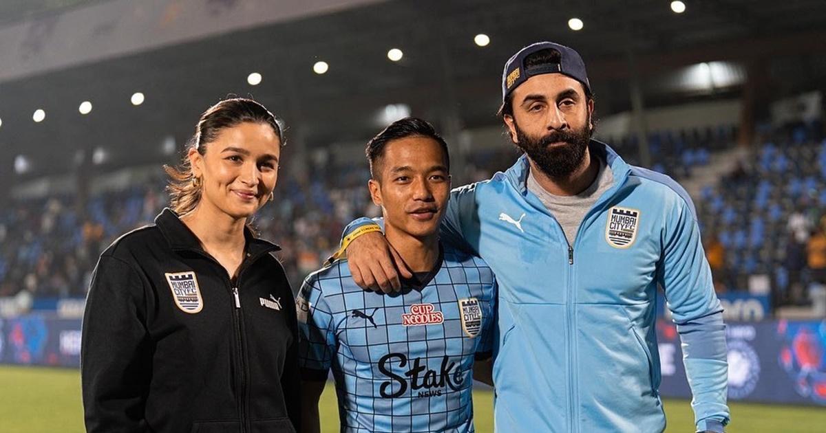 Mumbai City FC Co-Owner Ranbir Kapoor and his wife Alia Bhatt took some time out from their parenting duties to cheer their team in the Indian Super League encounter against Kerala Blasters.