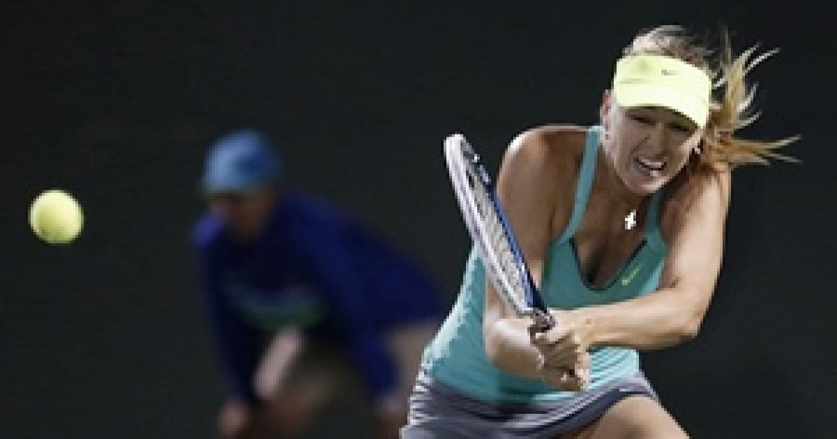 Maria Sharapova powered her way past another opponent at the Sony Open in Miami on Monday as the Russian world number two remains on target to finally claim a tournament that has brought her plenty of heartbreak.