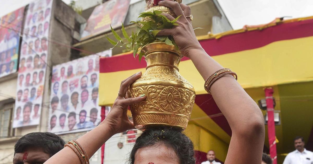 Sporting traditional attire and carrying bonam (offering) on her head, the double-Olympics medallist visited Mahankali temple at Lal Darwaza in the old city and offered prayers.