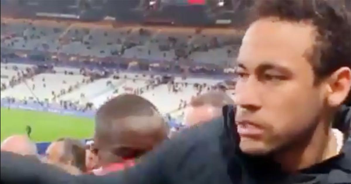 As the PSG squad walked up to receive their runners-up medals, Neymar initially pushed a supporter's hand away as he tried to record him on his mobile phone.