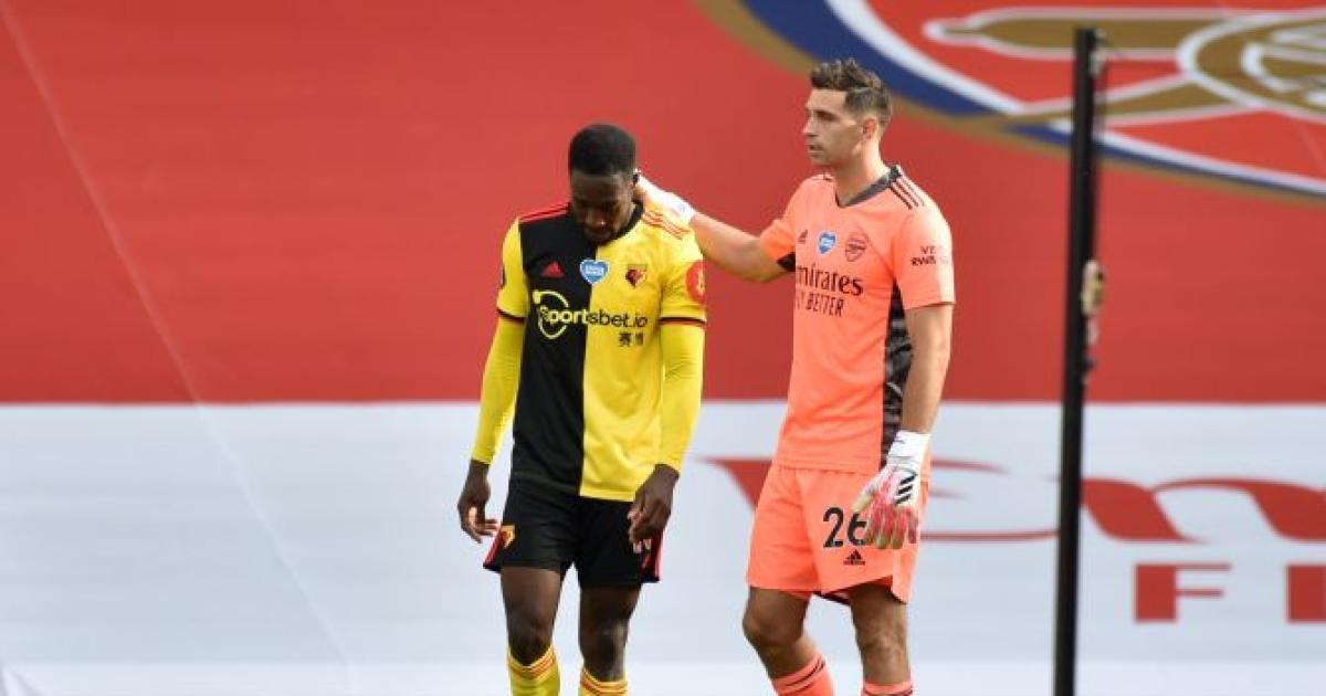 The lanky Senegalese passed across to Abdoulaye Doucoure, whose scuffed effort fell straight to team mate Roberto Pereyra, but the Argentine's shot from point-blank range was parried away by Arsenal keeper Emiliano Martinez.
