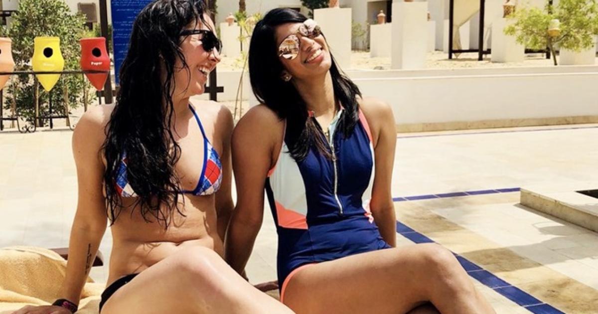 The 31-year-old was spotted at El Gouna resort soaking in the sun with a friend.