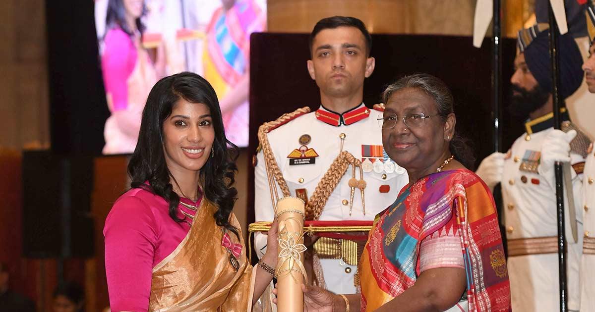 Indian squash player Joshna Chinappa was conferred Padma Shri in the field of sports by President Droupadi Murmu in a ceremony at Rashtrpati Bhawan in New Delhi on Thursday.