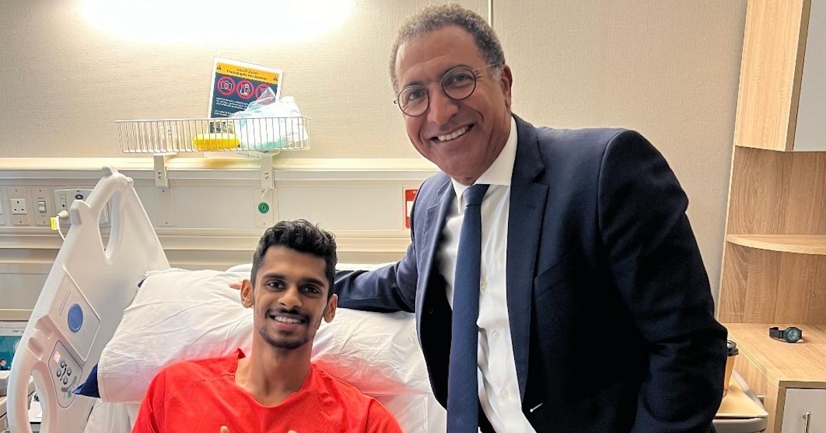 "The surgery was successful under Dr. Bruno Olory at the Aspetar Hospital, Doha. Thank you everyone for all your love and blessings during this tough phase. 18 hours post-surgery and I am already walking," wrote Sreeshankar on Instagram.
