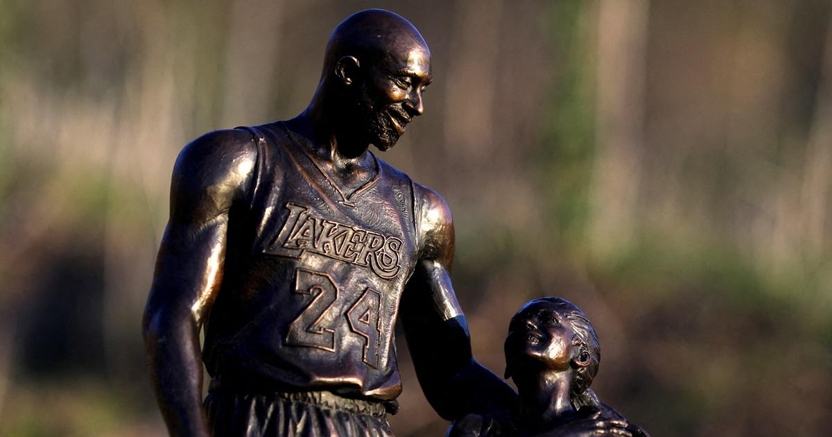 The 160-pound (73-kg) bronze statue depicts the pair wearing basketball uniforms and sharing a loving glance as Gigi holds Kobe's hand as it rests on her shoulder.