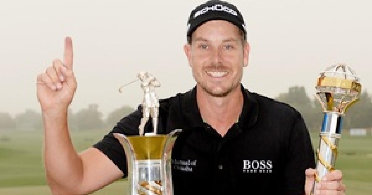 World No 3 Henrik Stenson blasted a final round 64 to clinch the DP World Tour Championship on Sunday, also topping Europe's money list for 2013 after his six-stroke victory in the desert finale.