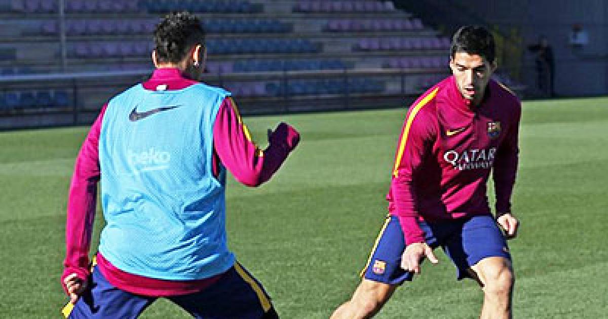 Image: FC Barcelona's Luis Suarez at a training session on Tuesday