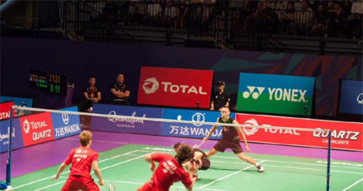 Image: Action from the doubles match between Denmark and Indonesia at the Sudirman Cup on Wednesday