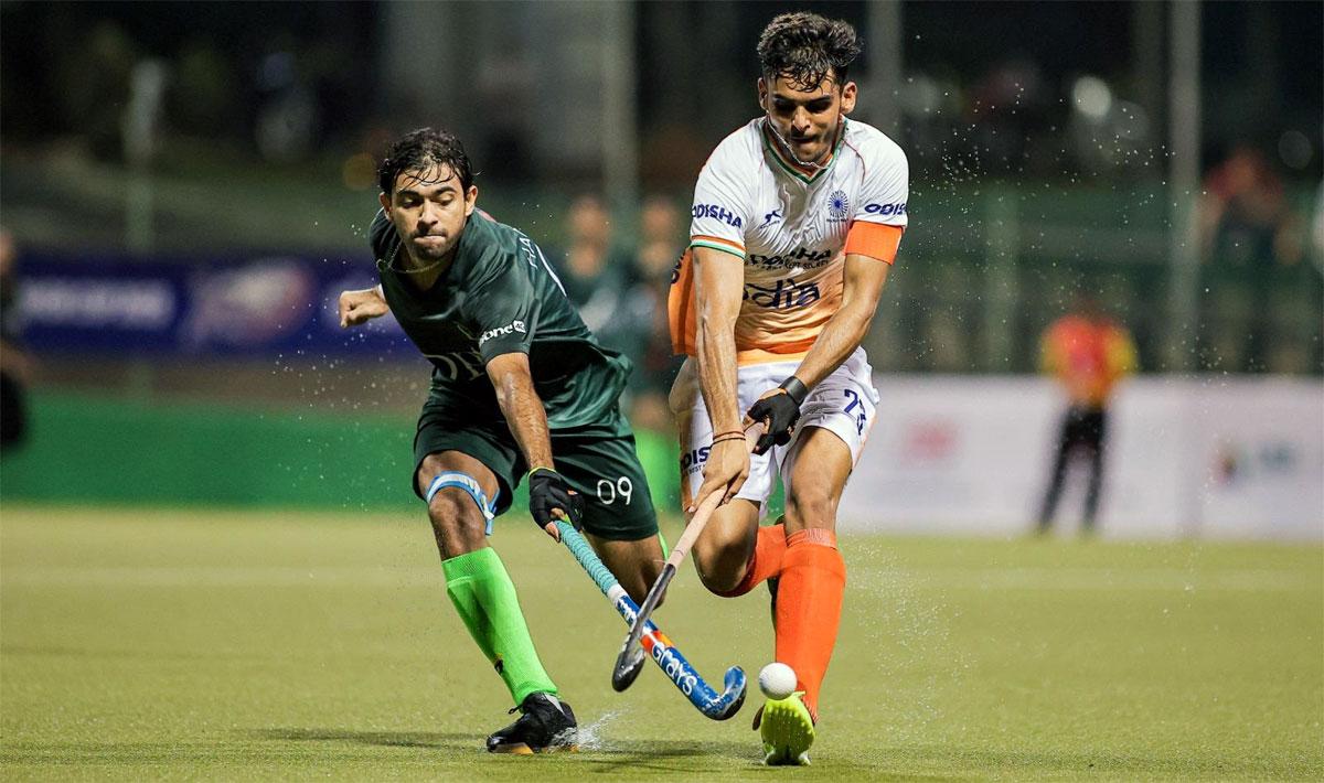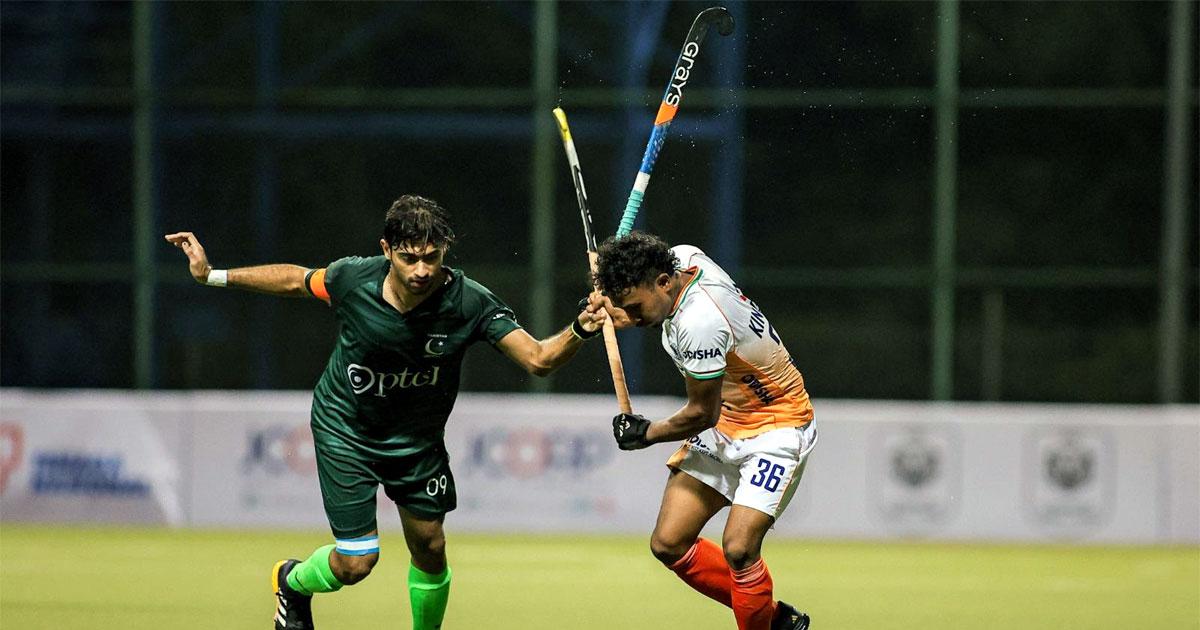 For India, Araijeet Singh Hundal (43rd minute), Sourabh Anand Kushwaha (47th), Manmeet Singh (53rd) netted goals, while for Pakistan, Hannan Shahid (5th) and Sufyan Khan (39th, 55th) were on the scoresheet.
