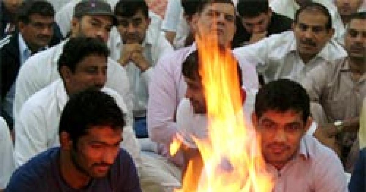 Image: Sushil Kumar (right) with Yogeshwar Dutt at the inauguration of the Indian Railway Wrestling Academy in Delhi