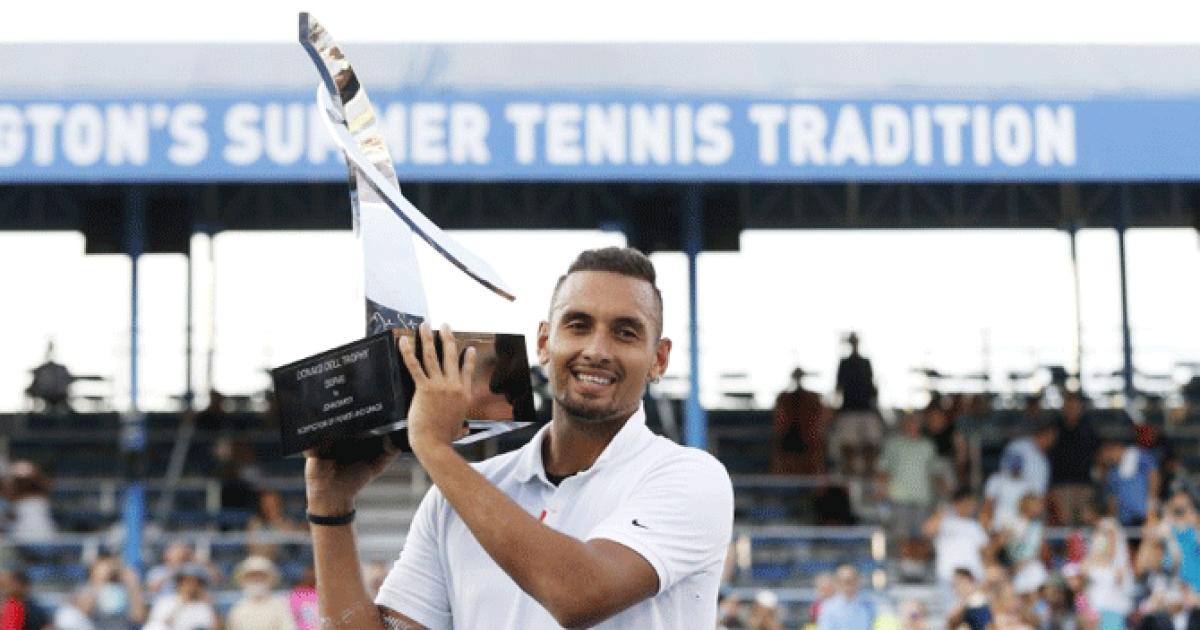 Nick Kyrgios overcame early back spasms to get the better of Russia's Daniil Medvedev in a pair of tiebreakers and win the Citi Open in Washington on Sunday.