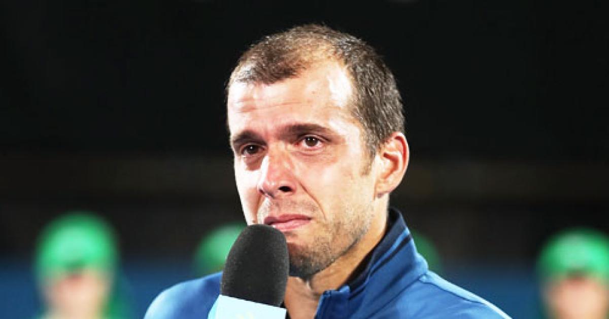 Image: Gilles Muller of Luxembourg gets emotional after winning the Sydney International men's final against Daniel Evans of Great Britain at Sydney Olympic Park Tennis Centre in Sydney on Saturday