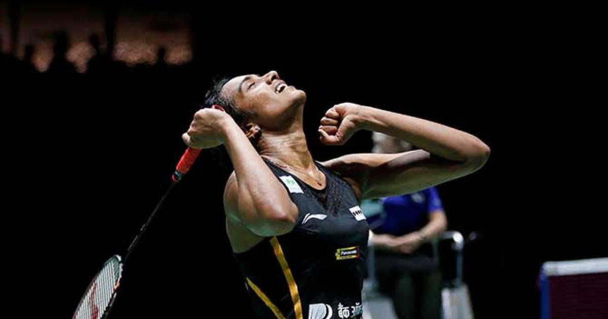 IMAGE: August 25, 2019. P V Sindhu wins the World Championship final against Japan's Nozomi Okuhara. Photograph: Vincent Kessler/Reuters