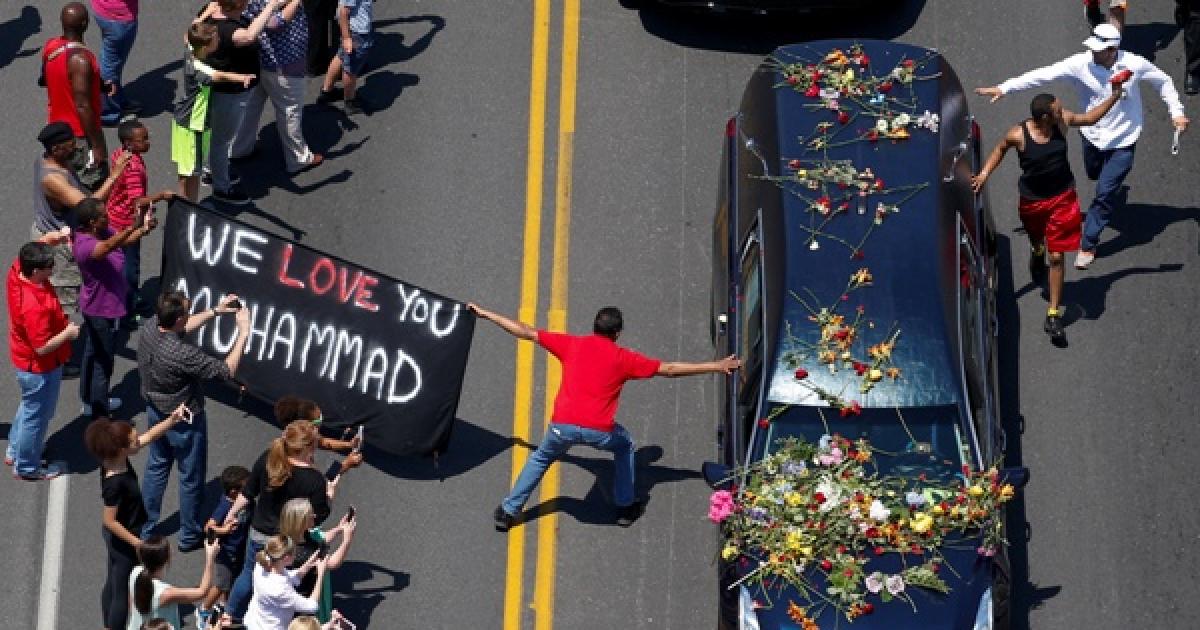 Fans chanting "Ali!" and throwing flowers lined the streets of Ali's hometown in Kentucky to celebrate the boxing champion who jolted America with his showmanship and won worldwide admiration as a man of principle.