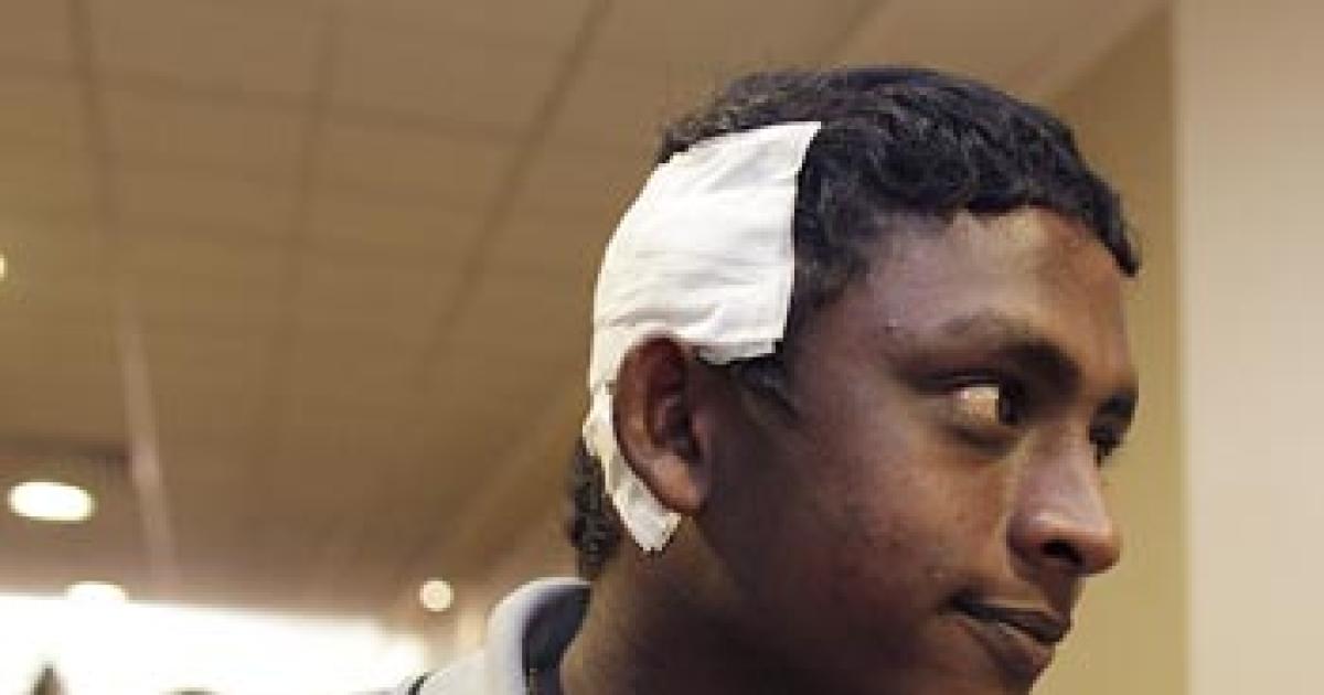Image: Sri Lankan cricket player Ajantha Mendis returns to Colombo after getting injured during the attack on the Sri Lankan team's bus in Lahore in March 2009