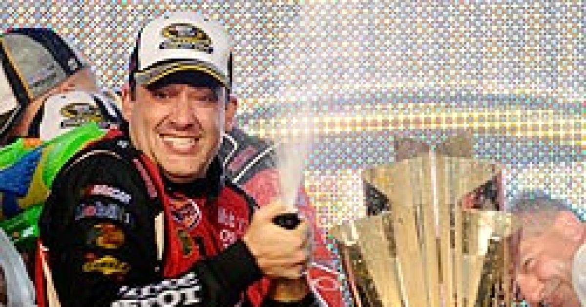 Stewart's victory, for his co-owned Stewart-Haas Racing team, meant he and Edwards finished level on points for the season but he lifted the Sprint Cup thanks to winning more races (5-0) in the season-ending Chase playoffs.