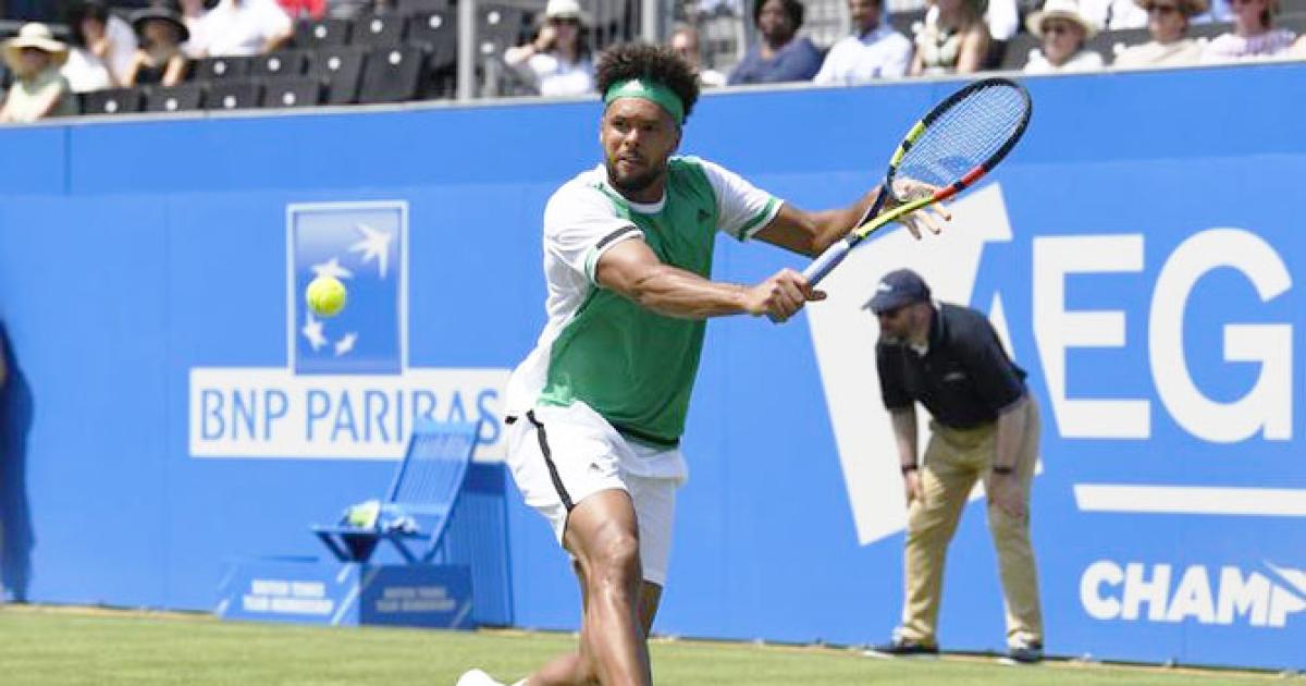 Earlier, Jo-Wilfried Tsonga returned emphatically to winning ways in the Queen's Club Championships in London on Monday, putting his shock first round exit at his home French Open firmly behind him.